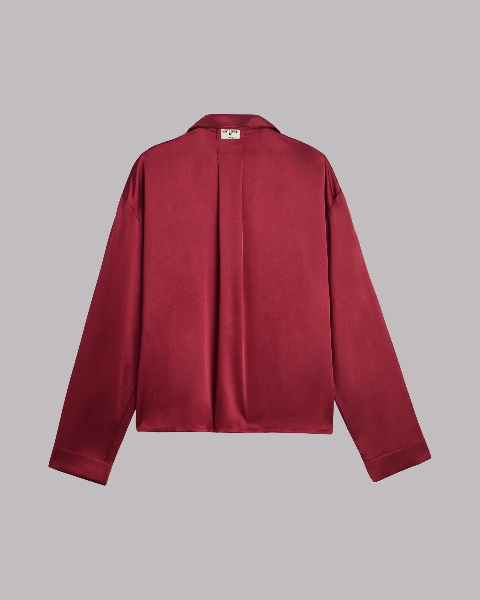 Relaxed-fit button-down silk shirt in red with extra long sleeves.